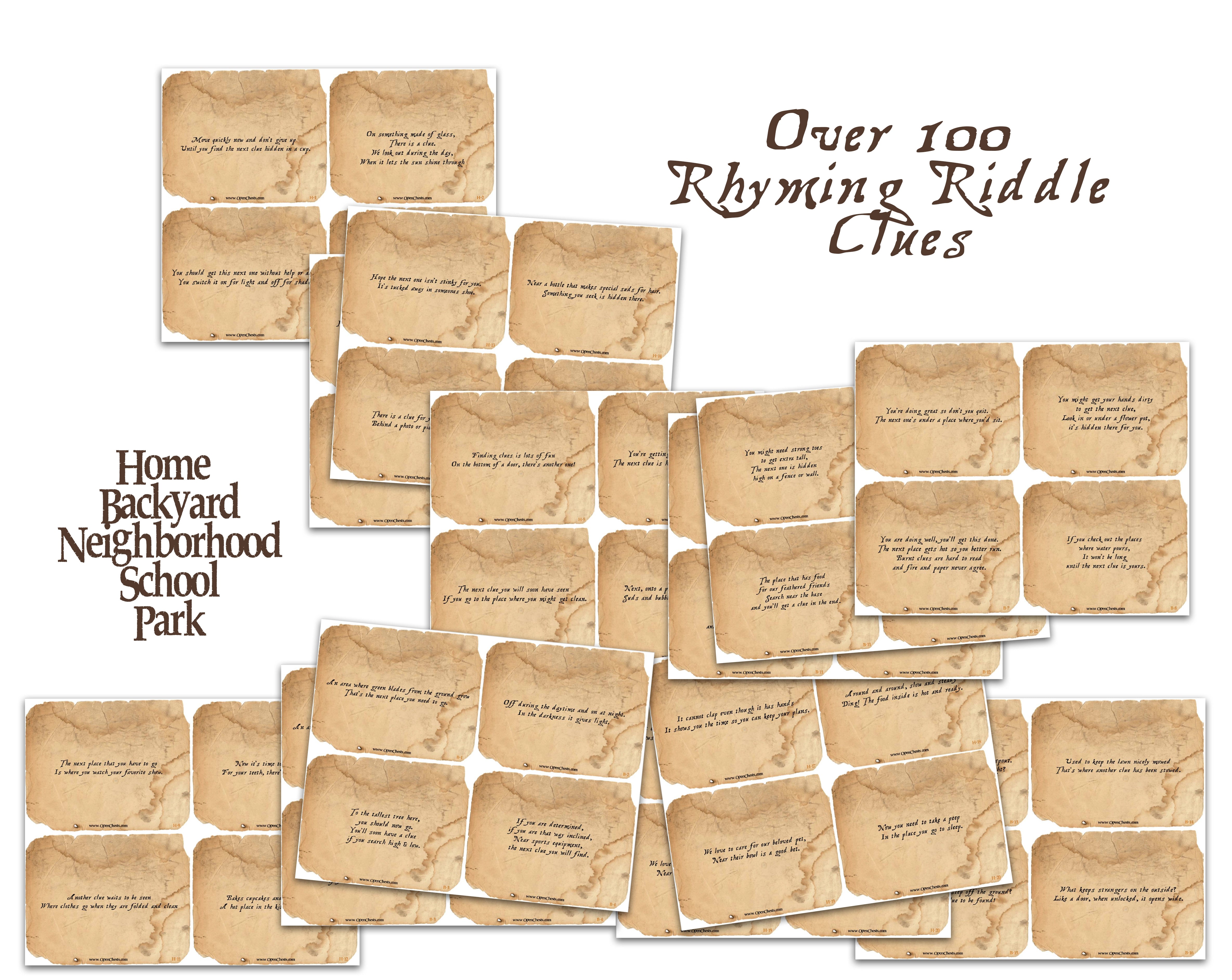 Subscribe and get the FREE 100 Rhyming Riddle Treasure Hunt Clues PDF.